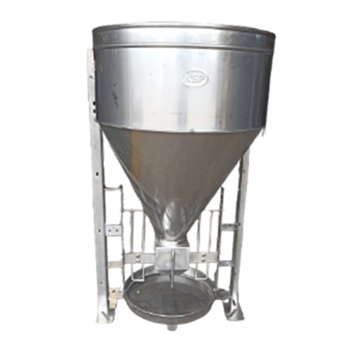 - Khung chân bằng thép mạ kẽm hoặc inox, kết cấu vững vàng, chống lật đổ khi heo ăn mạnh.